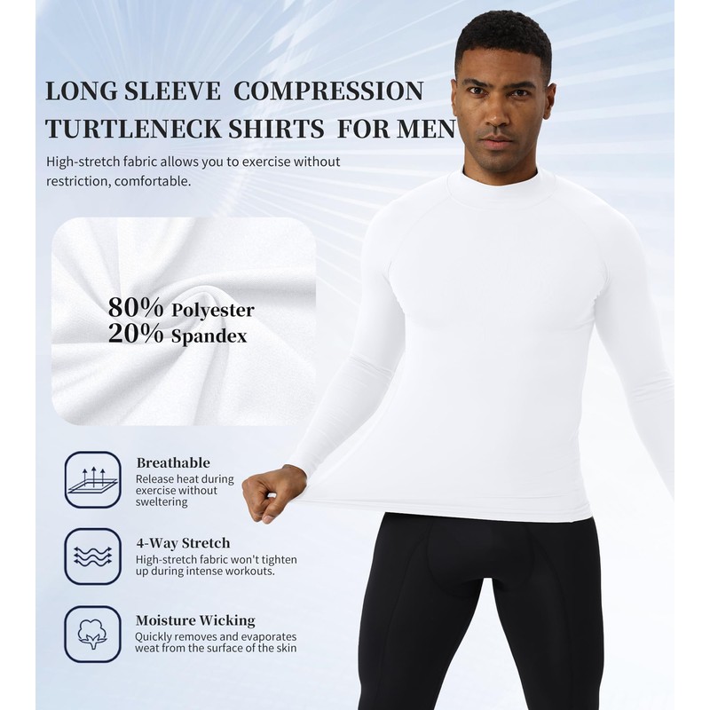 - Muscle Support: Mens turtleneck long sleeve shirts is made of 80% polyester and 20% spandex, which can effectively reduce muscle fatigue, promote muscle soreness relief and blood circulation, and accelerate recovery during high-intensity training.