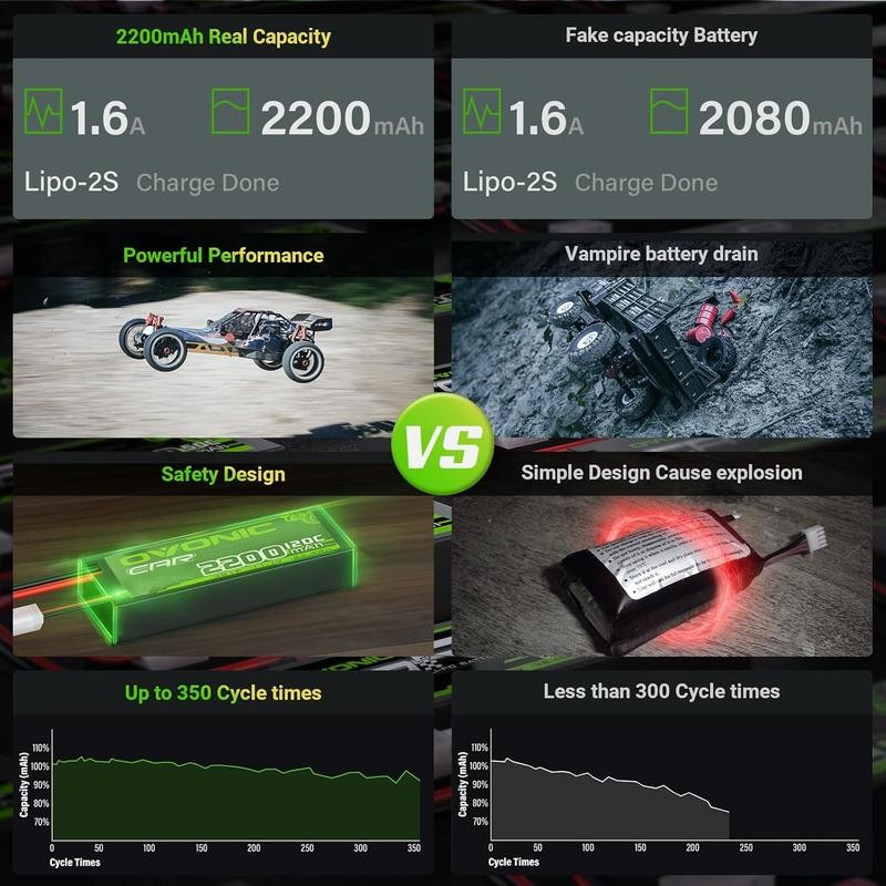 OVONIC 3S LiPo Battery 11.1V 2200mAh 120C Rechargeable battery with Deans-T Plug, for 1:14 RC Car RC Truck Airplane Helicopter Boat Car Racing RC Hobby (2 Packs)