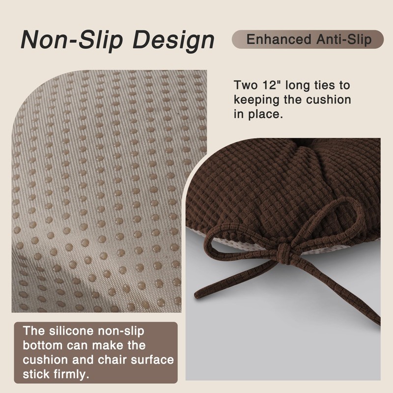 OVOV Chair Cushions for Dining Chairs Set of 1 Non-Slip Kitchen Seat Cushions 18" x 18" x 4" Indoor Seat Pads with Ties Coffee