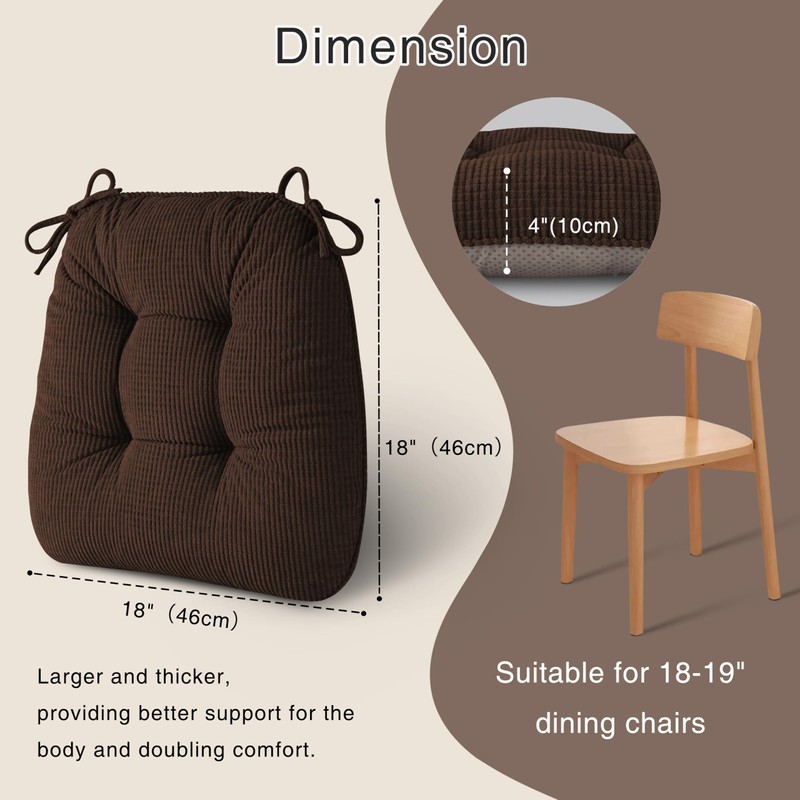 - Larger Size: To meet customer demand this chair cushion is made in larger size.The size of the seat cushion is 18" x 18" x 4",which is suitable for larger dinning chairs.