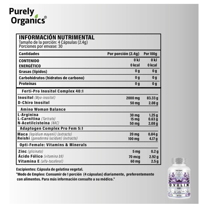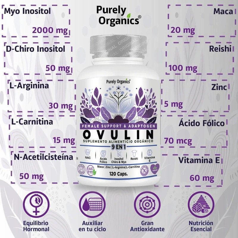 Ovulin. Myo y D-Chiro Inositol. Vitaminas para mujer, 9 en 1. Con Adaptógenos. 120 Cápsulas sin sabor.