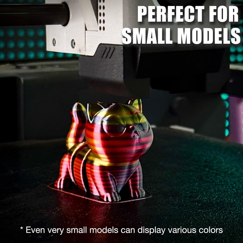 - Stripe Tri-Color PLA Filament The Stripe filament is a fast rotating color change tri-color filament, unlike ordinary tri-color PLA filament. This new Silk PLA filament prints random color-changing stripes, allowing even small models to be printed with rich color variations. More creativity and imagination for 3d printing.