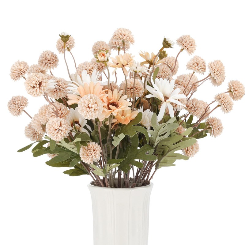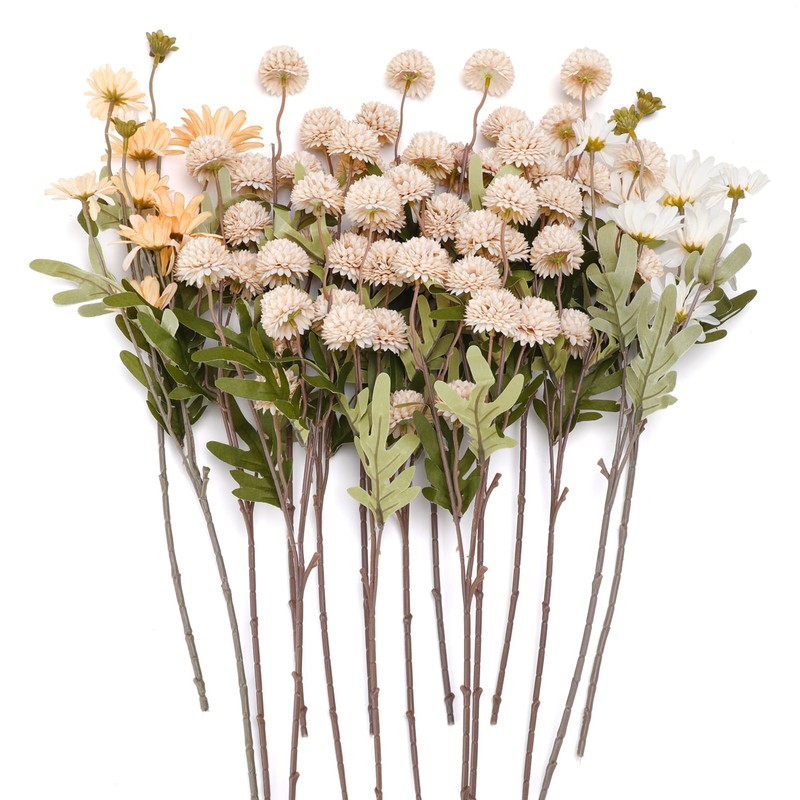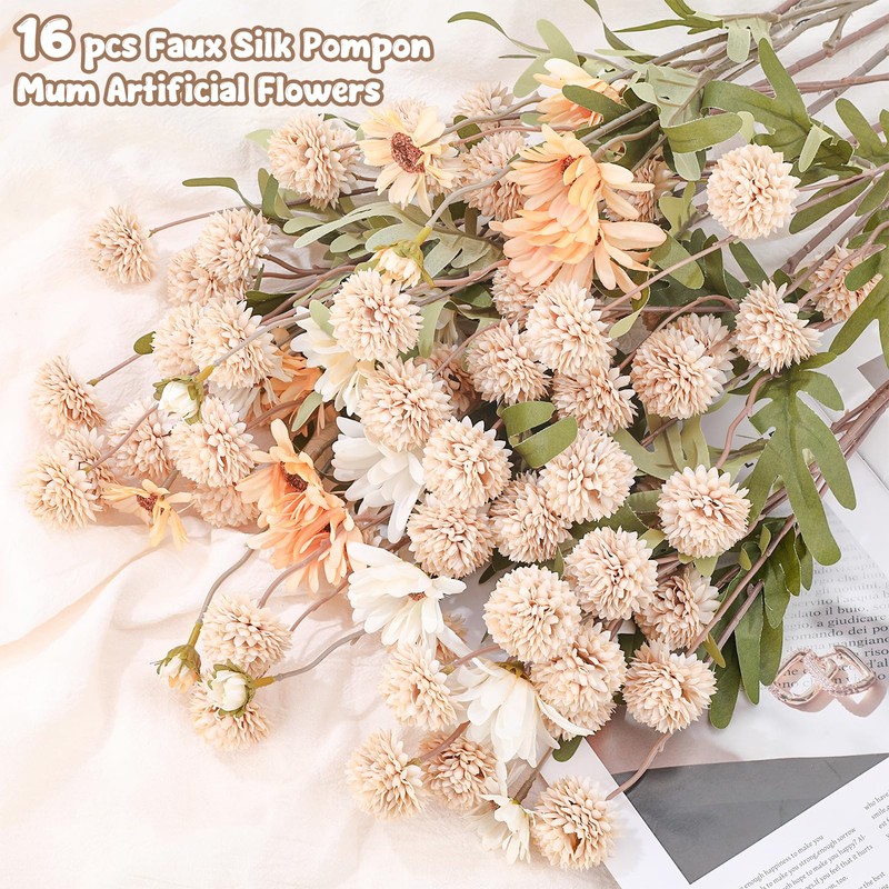 - Package Contents: This 16 piece set includes 12artificial dandelion pompon mums and 4 chrysanthemum artificial flowers (2 in autumn white and 2 in autumn champagne) in elegant beige tones for capturing the natural beauty of fall, this set is ideal for home decor, weddings, parties, and seasonal celebrations