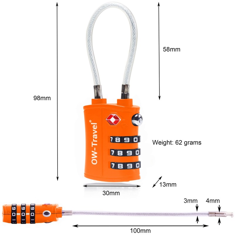 • 100% TSA Approved Cable Suitcase Locks Compatible with Master Key: Most countries now have the right to open and inspect your luggage - even if this means cutting the side of your luggage or bag. With the titanium lock with wire rope from OW Travel, your travel equipment can be opened by all TSA agents, which prevents them from damaging your luggage when trying to check the contents, and you many euros