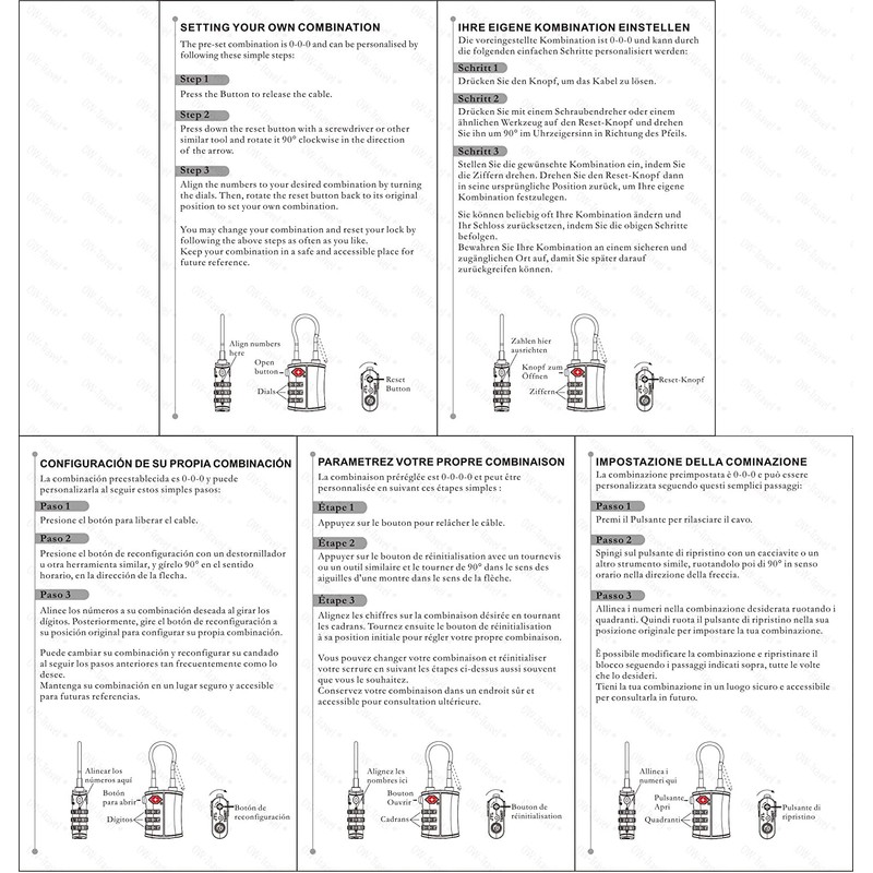 • The safest travel cable luggage locks - double security: Unlike 'imitation' padlocks - TSA Travel Sentry Approved travel locks are made of zinc alloy metal - making it almost impossible to cut or crack them with conventional tools. With the long, durable, plastic coated steel cable, you can secure bulky items. Three digit code combination locks > 1,000 combinations.
