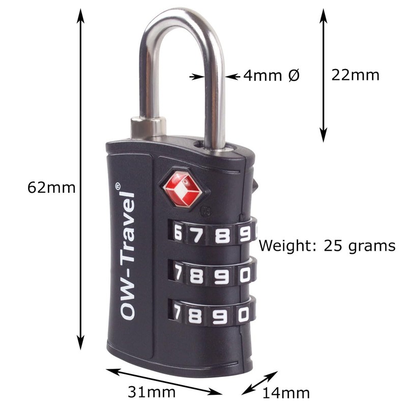 - 【Durable & Robust】TSA luggage lock. The OW-Travel suitcase lock is crafted from Robust Zinc Alloy making it near impossible to cut through or crack using regular tools. 4 dial numerical TSA approved luggage locks allows you to create over 10,000 combinations, so guessing your combo is almost impossible. A Padlock designed for a suitcase. Double your security with this combination lock for suitcase: Unlike ‘copycat’ Combination Padlocks that leave you with a false sense of security.
