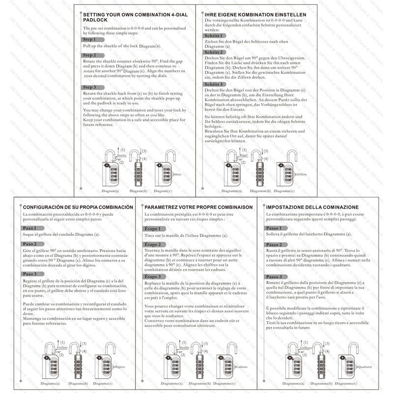 - 【Easy To Use】 Travel combination padlock for luggage with bigger easy move dials. High contrast white numbers on a black background and the quick read window make reading your luggage lock combination easy. Quickly reset pass code locks in 3 simple steps. A TSA travel lock can be used with airplane carry on cabin hand baggage. A TSA travel padlock with combination is a padlock for travel but can be used around the home. Luggage padlock case padlock keep belongings SAFE and lock luggage.