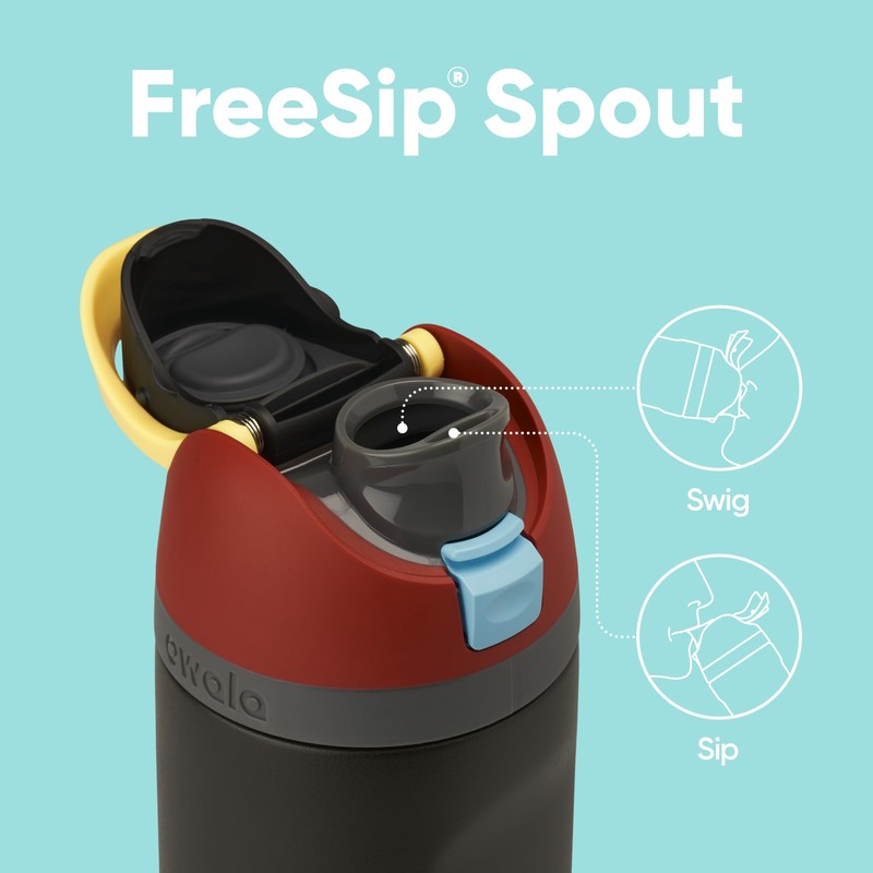 - Patented FreeSip spout designed for either sipping upright through the built-in straw or tilting back to swig from the spout opening