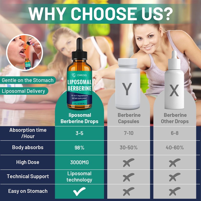 • Natural Ingredients: Owegel liposomal berberine HCL is made under U.S. Food Guidelines, ensuring high quality and safety. Non-GMO and gluten-free, it offers a reliable choice with natural ingredients for consumers