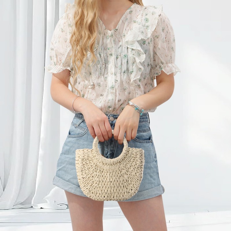 - Vacation Essentials: Half moon structured shape, circle handles and a drawstring closure, this woven straw handbag is a perfect accessory that adds a touch of styles to your spring and summer look.