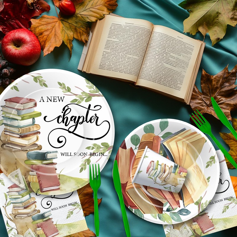 - 【Apply To】Whether hosting a birthday party, baby shower, farewell party, housewarming, moving away, job change, retirement, or relocation celebration, this book theme party supplies tableware set is a good way to bring excitement and energy to the table