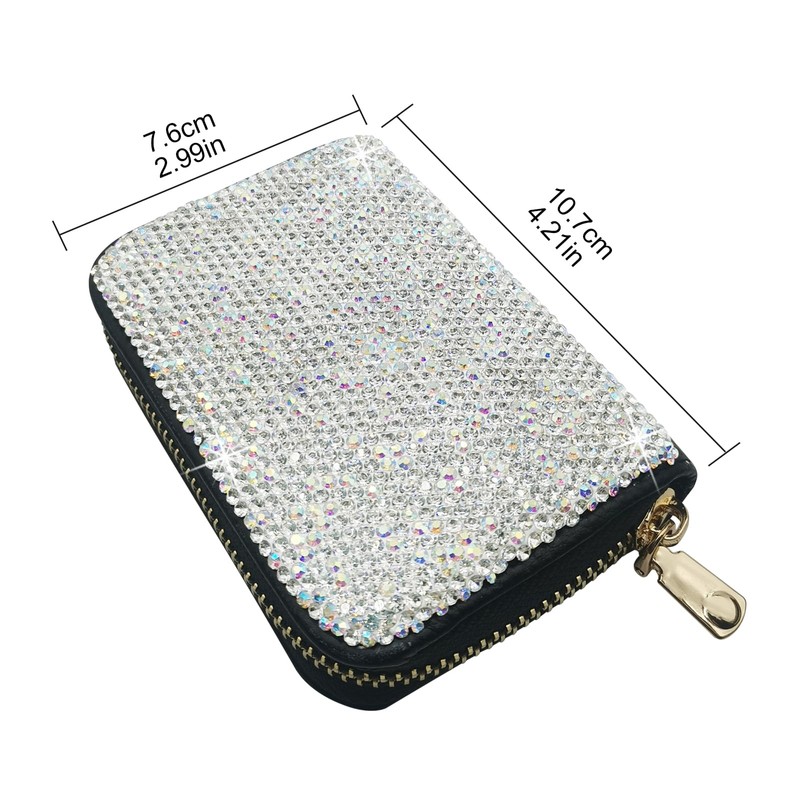 The Most Cost-effective Glitter Wallet This credit card organizer is made of high-quality metal and PU leather material, classy and sturdy. Different from other cheaper, poorer-quality rhinestones, we choose AB rainbow crystal rhinestones, which provide a long-lasting, clear sparkle that won't get damaged. This credit card case is beautiful and durable,also an ideal gift for Thanksgiving, Christmas, Valentine's Day, bridesmaids and brides, weddings, graduations, anniversaries, etc. Whether it is given to yourself or to anyone who loves bling, it will bring happiness.