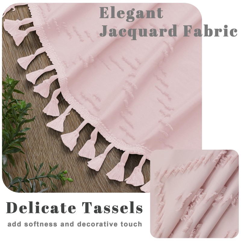 OWENIE Boho Shower Curtain, Blush Pink Fabric Cloth Shower Curtains Farmhouse Tufted Chevron Striped Textured with Tassel for Bathroom, Soft Hotel Style Modern Minimalist, Machine Washable, 72x72
