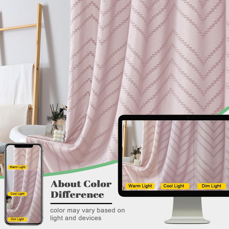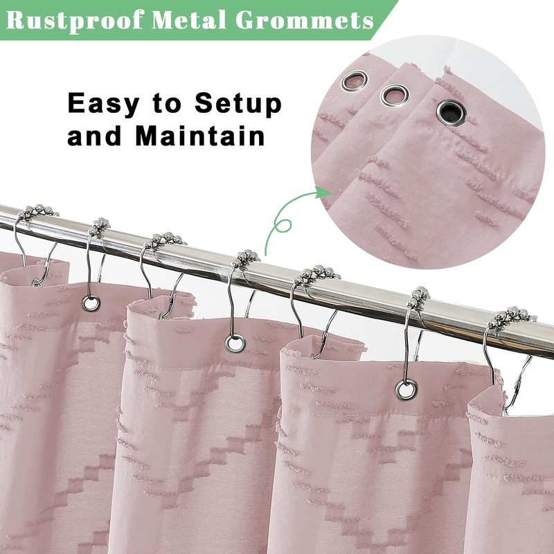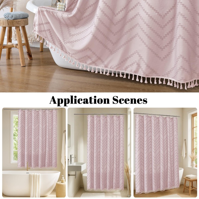 - Blush Pink Shower Curtains Set for Bathroom:Each package includes 1 tufted chevron-striped textured shower curtain (72 x 72 inches), designed to fit most standard tubs and shower areas. We recommend measuring your space beforehand to ensure the perfect fit
