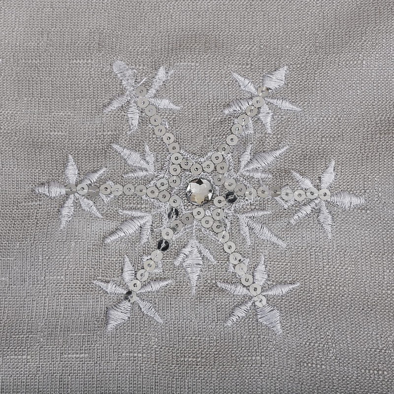 - [GOOD QUALITY]: These christmas snowflake cloth napkins made of silver shiny texture fabric, with secquins and good embroidered snowflake, subtle and not too flashy. Made by our Oeko-Tex certified factory. Good quality giving a long lasting use. Could be used for all the winnter season. Add a touch of class to your dinner table by placing these elegant dinner napkins that help in uplifting your dining experience.