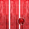 OWill 3pcs 3ft X 8.3ft Red Metallic Tinsel Curtains Aluminum Foil Flow Silk Curtain Background Streamer Birthday Party Wedding Holiday Backdrop Decoration