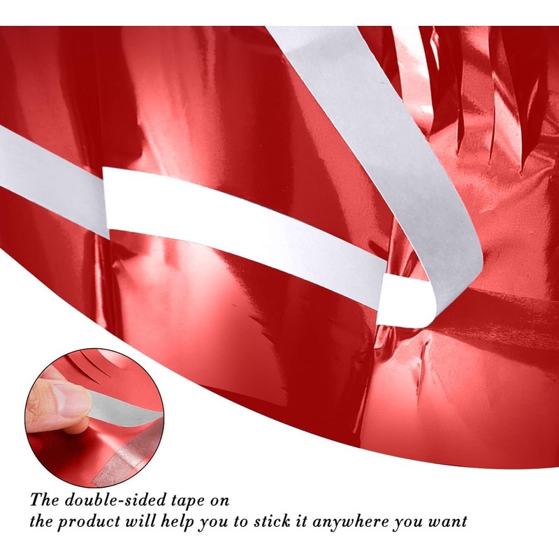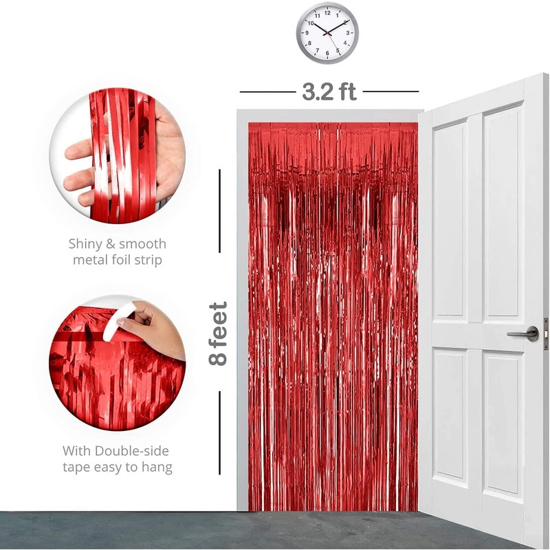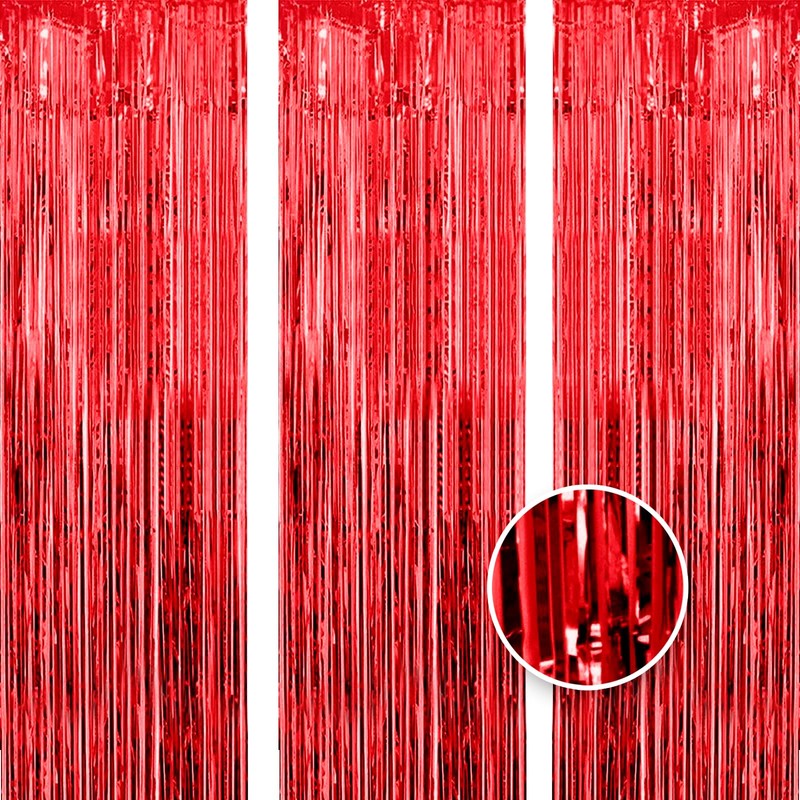 - Package Includes - 3 sets of 3ft x 8.3ft metallic wire red foil tasel curtains, plenty of length to decorate your party.