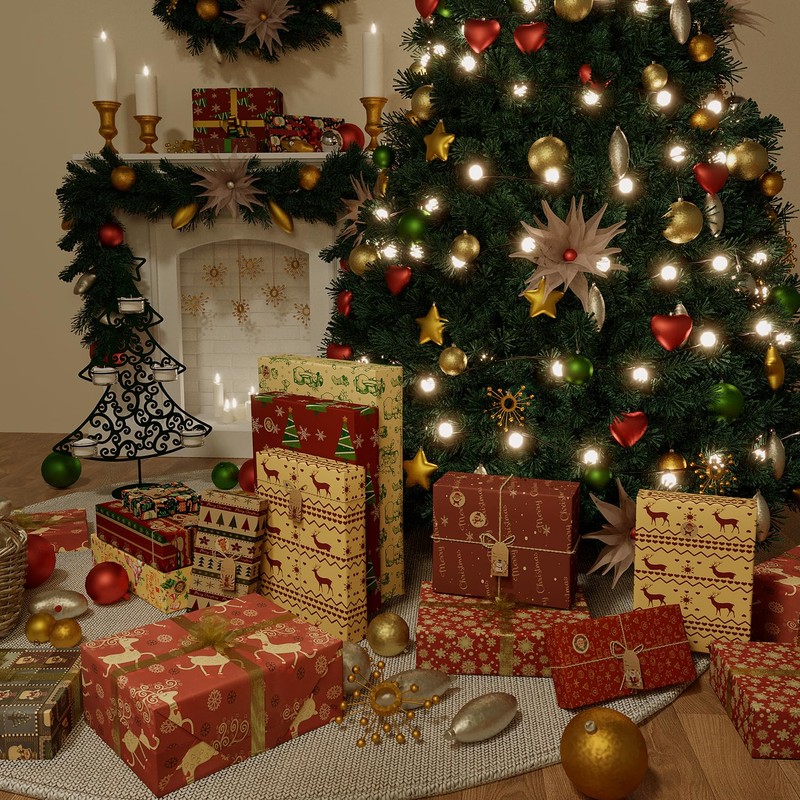 • Rich Christmas Wrapping Paper Set: You will receive a rich set of 12 XL Christmas gift wrapping paper set, 12 Christmas card tags, 12 Christmas stickers, 10m jute string and a roll of double-sided tape, Make the gift you made with care even more beautiful