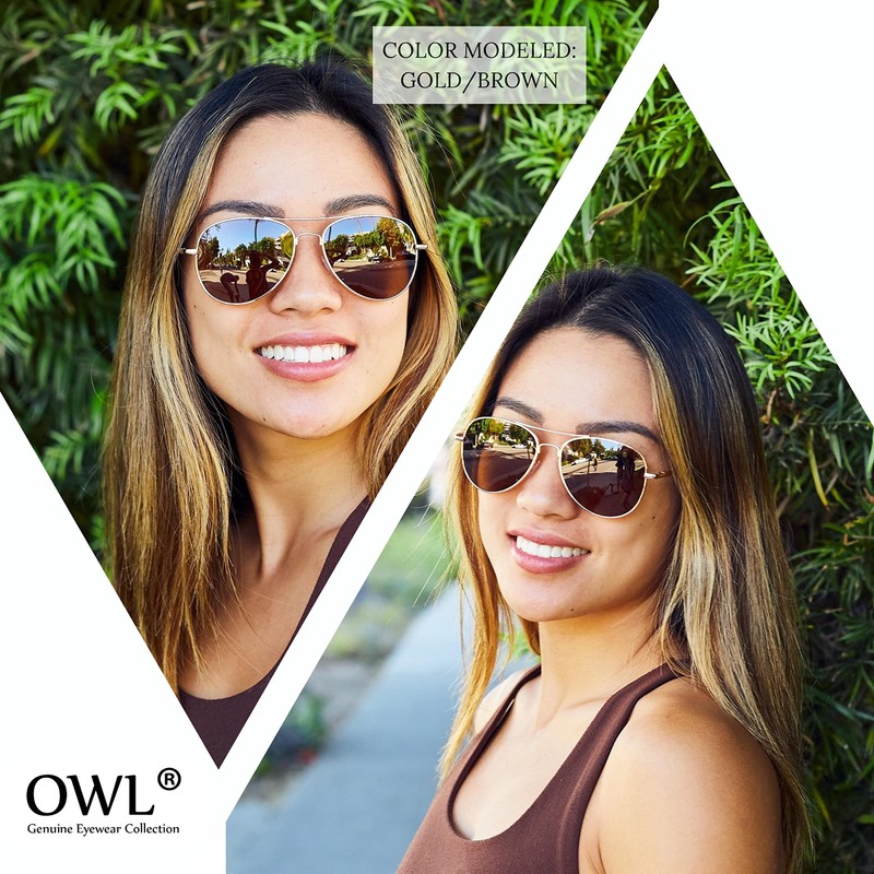 OWL Aviator Sunglasses Gold Metal Frame Blue Mirror Lens Spring Hinge