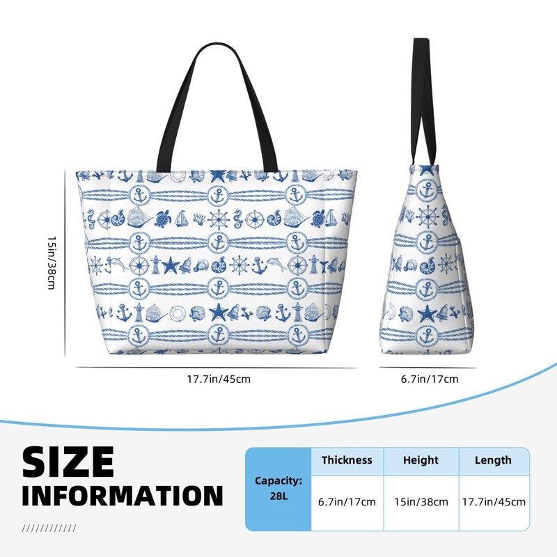 Owlfder Large Beach Bag for Women Anchor Turtle Rudder Cruise Pattern Waterproof Travel Shoulder Tote Bag with Pocket for Weekender Pool Vacation