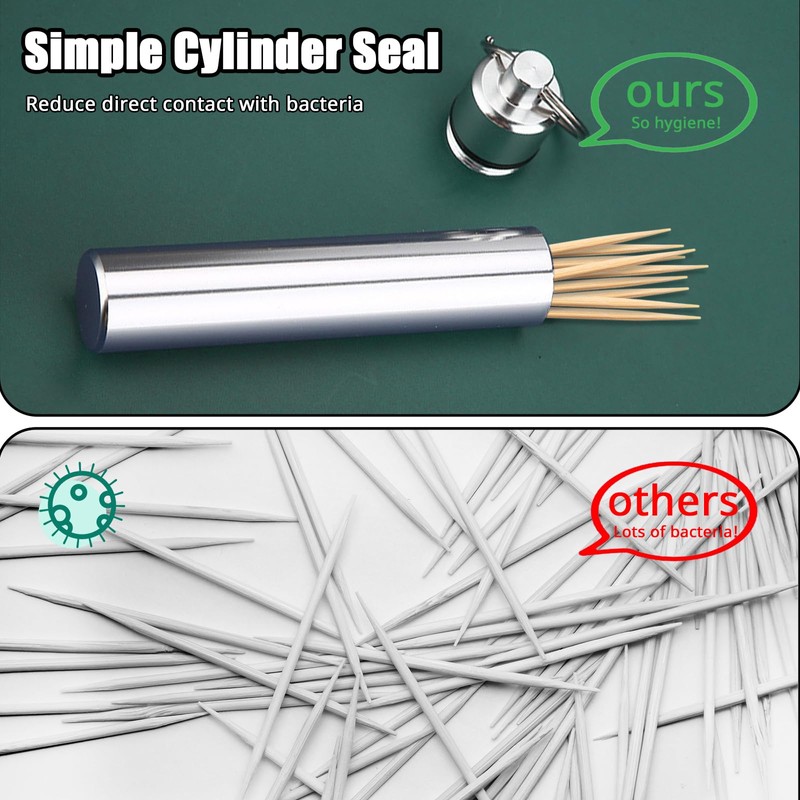 - Multi-purpose: toothpick dispenser for storing toothpicks, pills, vitamins or small cleaning tools. An essential accessory for camping, hiking, picnics or everyday use.