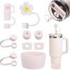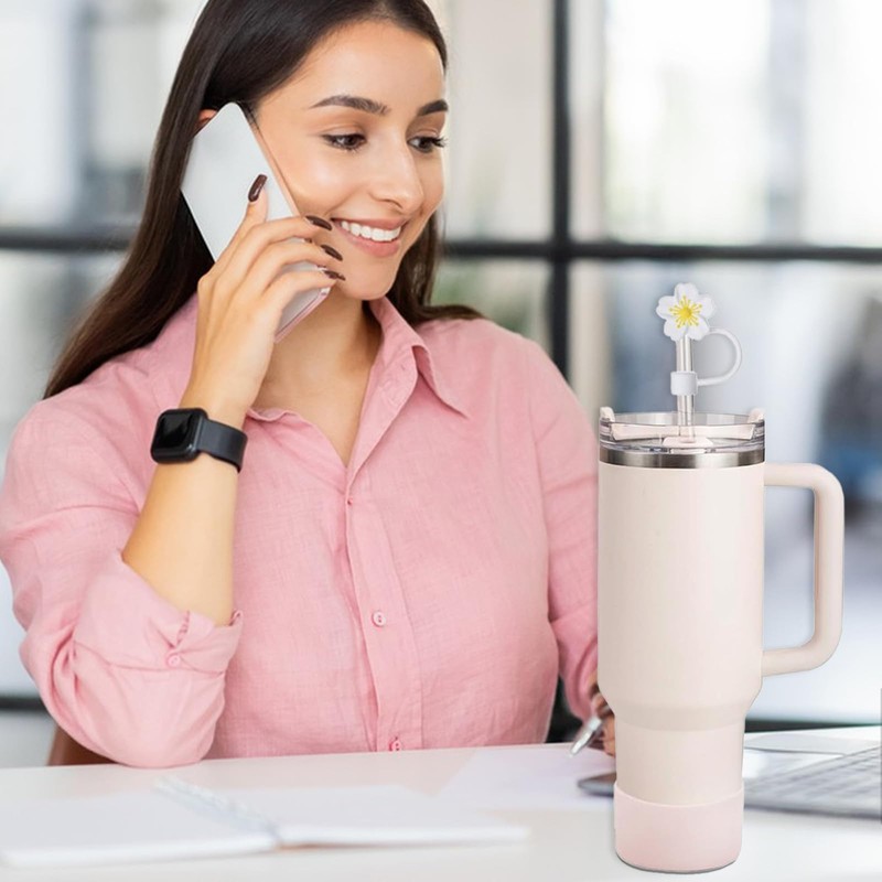 - High-quality material: quencher accessories. All parts are made of food-safe silicone, which is durable, odourless and reusable. The set is easy to clean, dishwasher safe and can also be washed by hand. The flower attachment for the straw brings colour and joy to your everyday life.