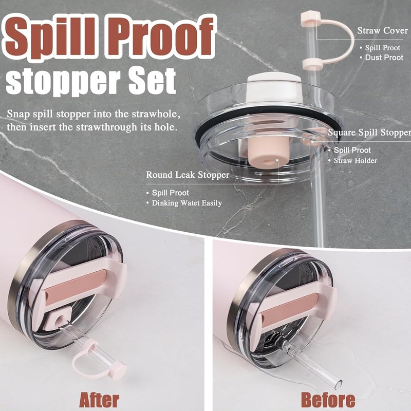 - Practical design: the cup accessories offers a 360° anti-leak design that prevents accidental leakage. The silicone bottom protector protects the cup from scratches and dents, reduces noise and extends the life of the bottle. The silicone straw cover provides a dust and splash proof seal.