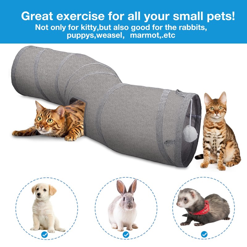 - Keep Your Pet Active: We provide hanging balls and peepholes on the cat tube to allow your cat to engage in additional entertainment activities. The small ball toy hanging in the middle of the cat tunnel can stimulate the cat's curiosity. Additional feather wand can increase interaction with cats.