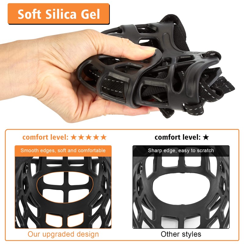 - Soft Silicone Material: Made of soft, stretchable silicone, Ownpets dog muzzle is sturdy, not easy to bite and won’t rub dog mouth. With smooth edges, it’s comfortable to wear, lightweight and won’t hurt dog skin. The dog basket muzzle is ventilated and breathable. You can let your dog wear this safe muzzle with no worries.