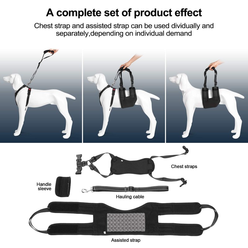 - Professional Dog Support Harness: Ownpets Dog Support Harness aims to provide support to dogs suffering from arthritis, degenerative myelopathy, vestibular disease, hip or back surgery, and disabled dogs needing help with mobility or balance. It can assist your dog to move freely as other dogs. Chest strap, assisted strap, hauling cable and handle sleeve are included in each set.
