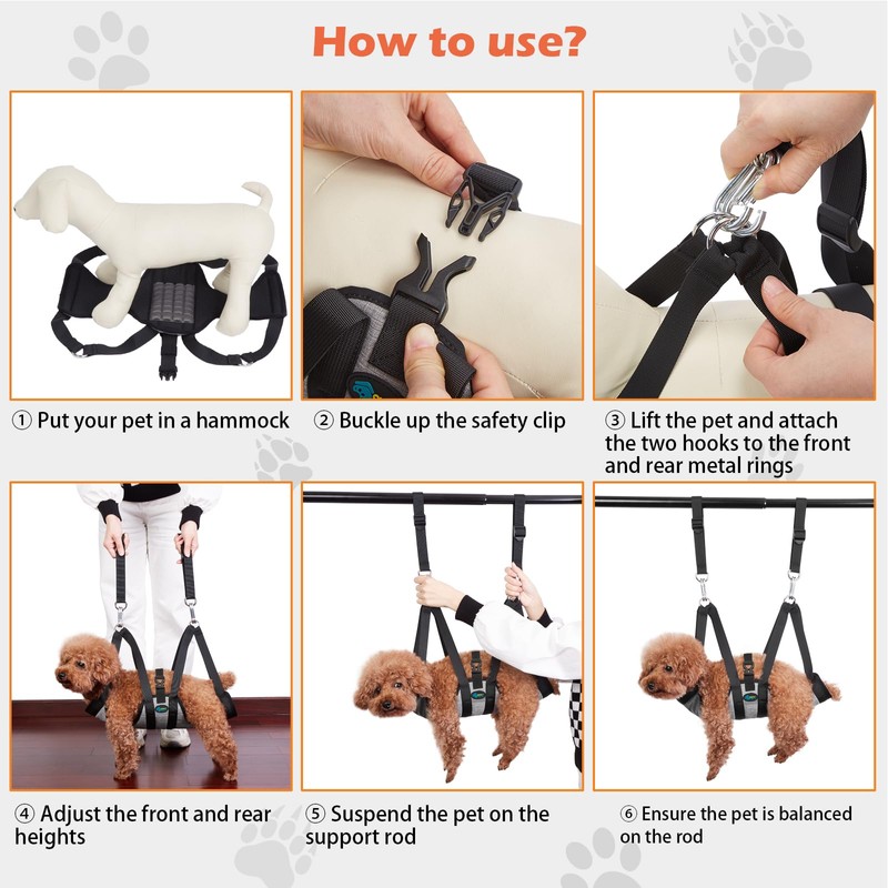 - Multi-Functions: The pet grooming hammock can be used for professional grooming and daily care. It can also be used as a dog sling to carry your dog for a walk, or to help disabled dogs go up and down stairs.