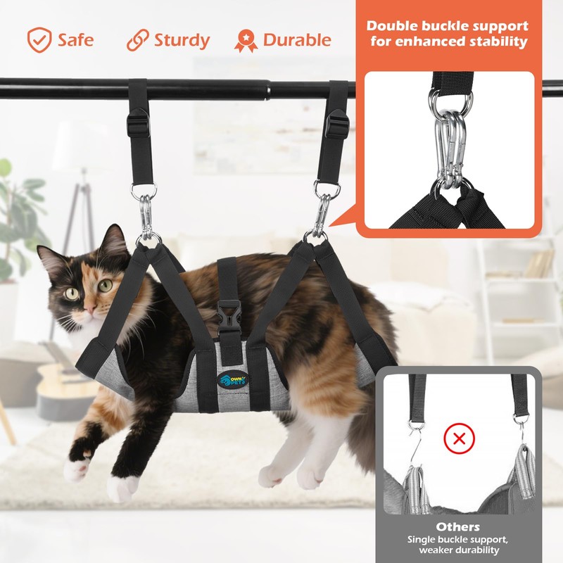 Ownpets Pet Grooming Hammock Harness for Cats & Small Dogs, Dog Hammock for Grooming with Carabiners & Handle pad, Pet Grooming Harness Sling for Grooming, Bathing, XS