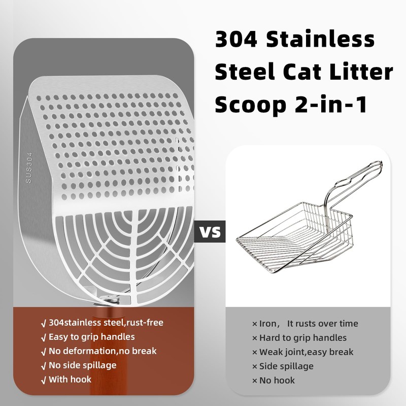 - Durable Material: Made from high-quality stainless steel, this cat litter scoop is robust and resistant to corrosion. It can withstand frequent use without deformation or rusting