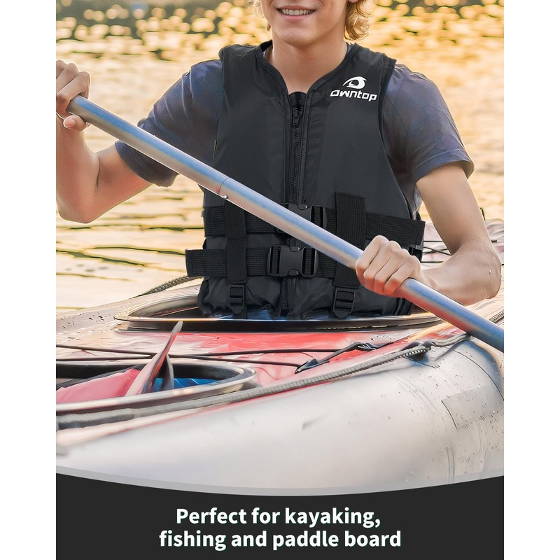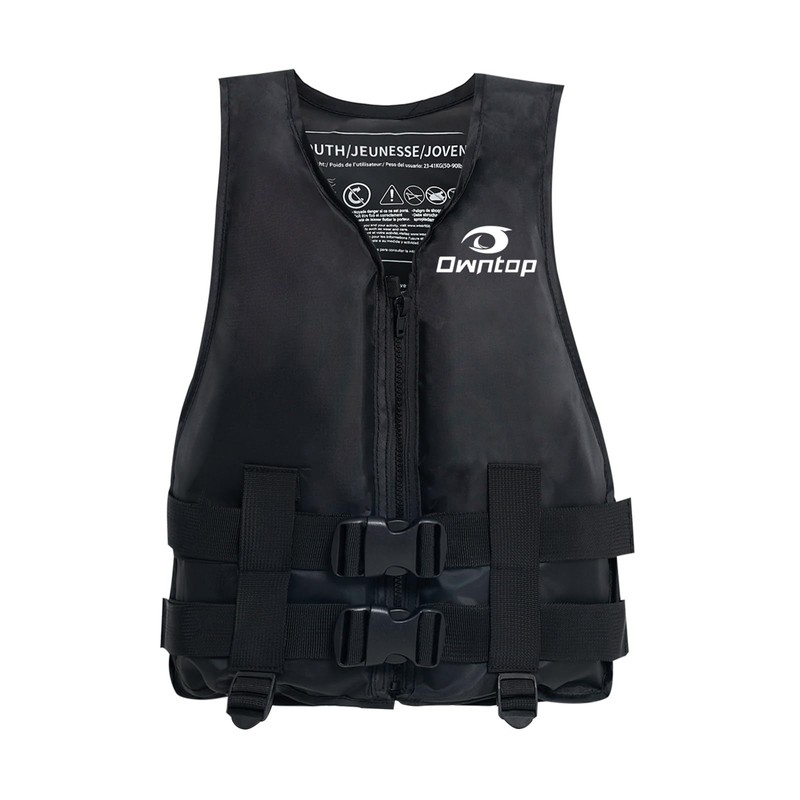 Owntop Kids Swim Jackets 50 to 125 lbs Dual Buckles, Zipper and Crotch Strap Ski Vest Lightweight PFD Perfect for Kayaking, Fishing, Paddle Board(Black)