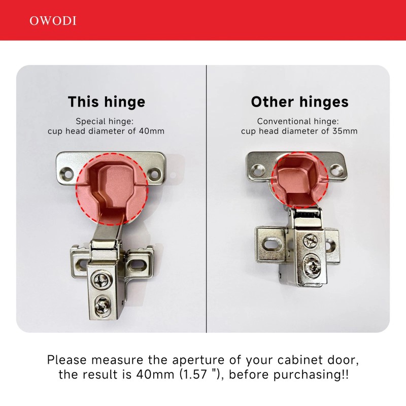 OWODI 6 Pack 1-1/4 Inch Soft Close Cabinet Hinges – 40mm Cup Diameter, 95° Op...