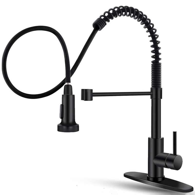 • HEALTHY QUALITY - The SUS304 stainless steel kitchen faucet, has no worry of LEAD. Black kitchen sink faucet made up of food-grade PEX inner hoses, enjoy your healthy utility sink faucet.Ceramic disc valves exceed industry longevity standards, ensuring durable performance for life. High performance aerator.