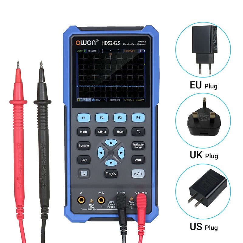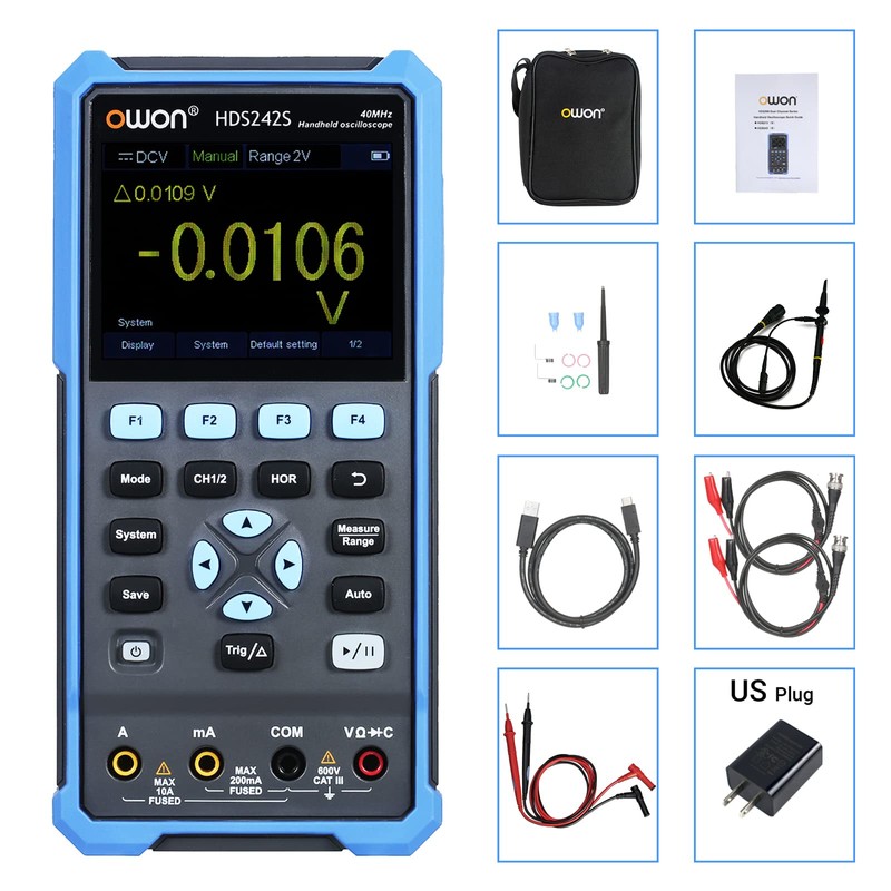 OWON 3 in 1 HDS242S Handheld Digital Oscilloscope with Wareform Generator Function 40MHz 2 Channels Digital True-RMS Multimeter (Owon HDS242S)
