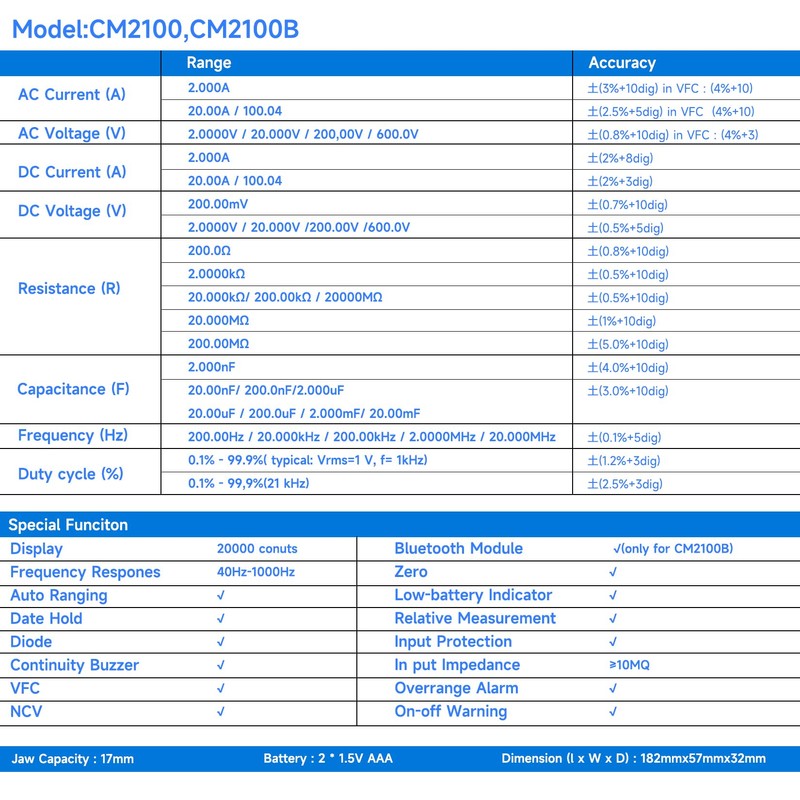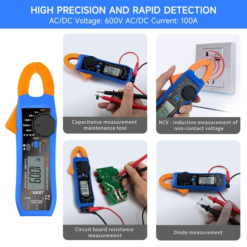 - AC/DC Integrated: CM2100 Clamp Meter suitable for AC/DC Voltage/Current measurement, high precision induction clamp head accurately induct the small current