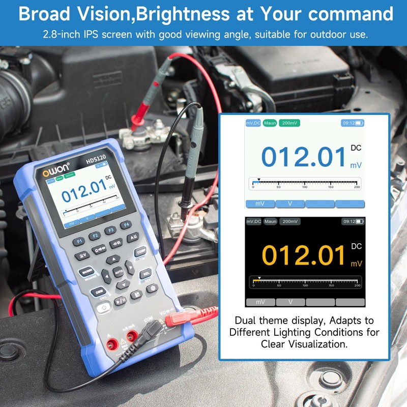 OWON HDS120 2-in-1 Multi-Function Oscilloscope Multimeter, 1MHz Bandwidth with 2.8" IPS Screen, 20000 Counts, 4 1/2 Digital Multimeter and 1 Channel Digital Oscilloscope