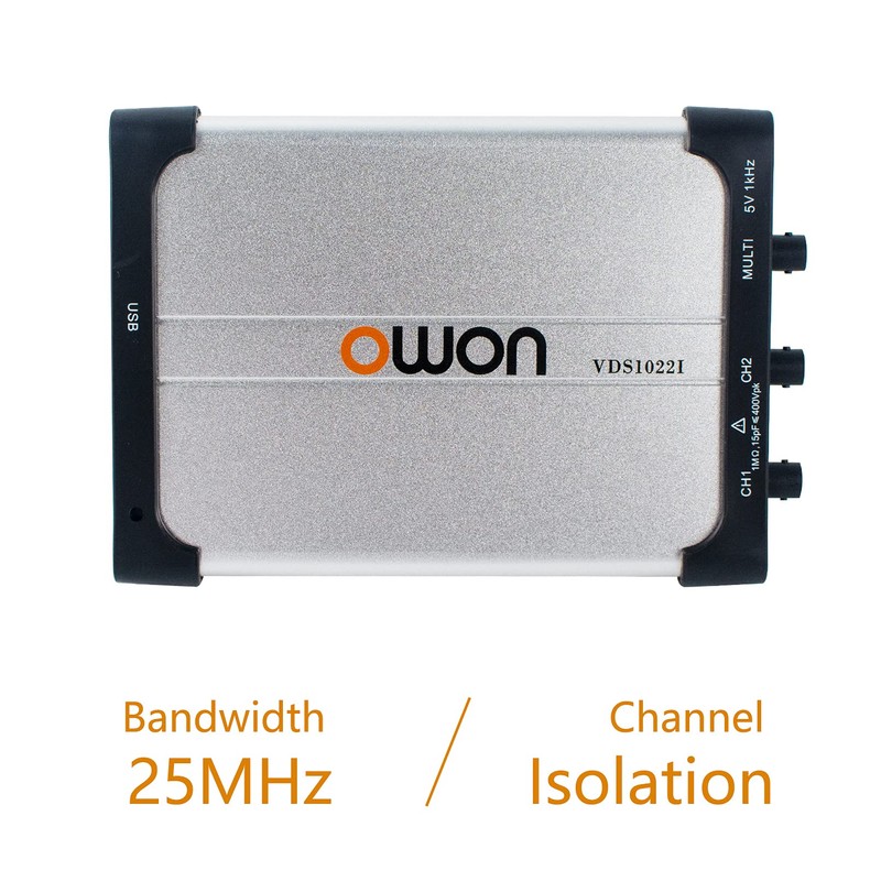 OWON VDS1022i USB Oscilloscope PC based, 2+1 (multi) channels Handheld Portable Oscilloscope, Virtual oscilloscope 25MHz Bandwidth with channel isolation,oscilloscope for DIY, Automotive Oscilloscope.