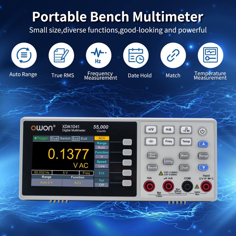OWON XDM1041 Protable Bench Multimeter with 3.5 Inch 55,000 Counts True RMS Ultra-light Digital Multi Tester for Labs, Factories
