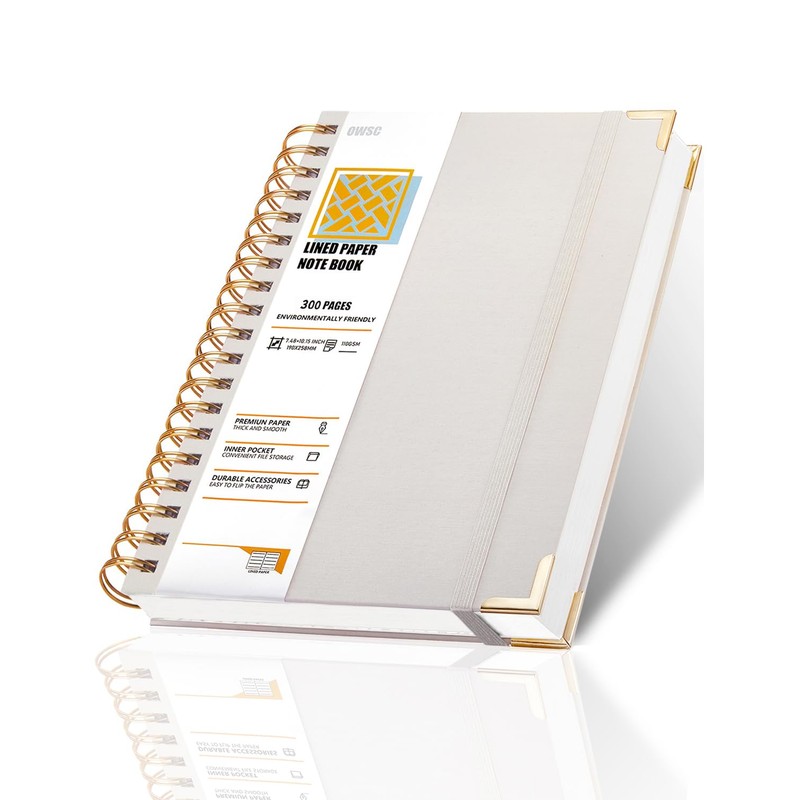 OWSC Lined Spiral Notebook with thick 110 GSM Papers, 300 Pages B5 Size College Ruled Notebook, Hardcover 7.1 x 10 Inches Journal for Women and Men, Notebooks for work, School, 1 Pack Grey
