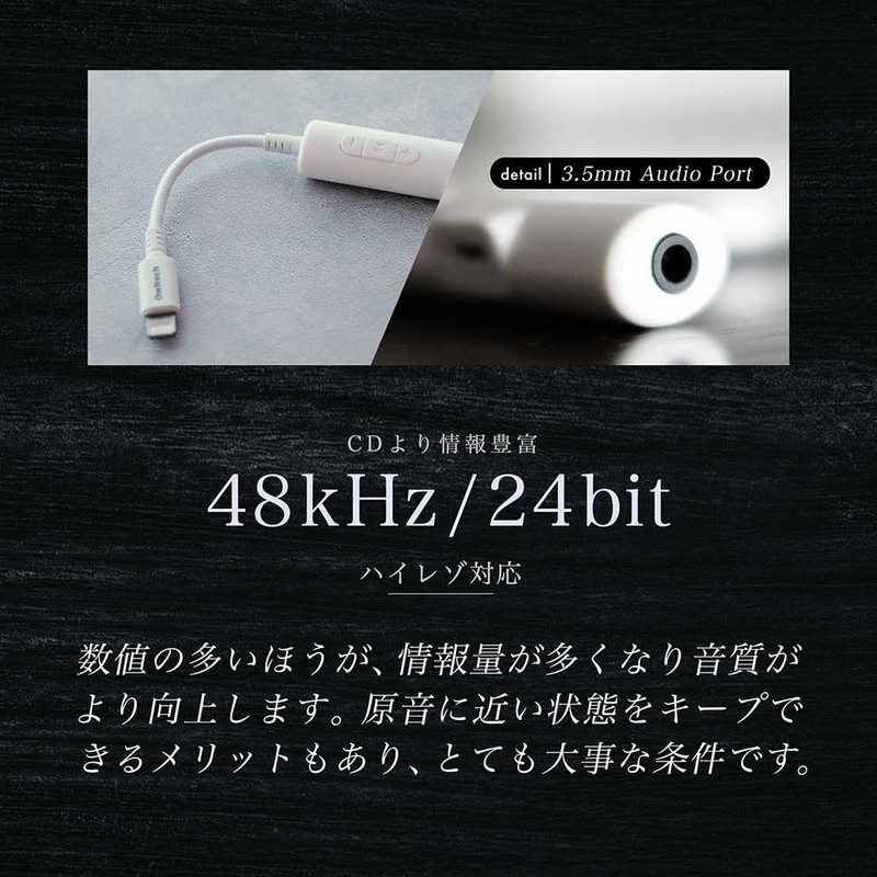 - Equipped with DAC and supports 48 kHz/24 bit high resolutions: DAC stands for Digital to Analog Converter, which converts digital signals to analog signals. DAC inside the adapter minimizes signal degradation and ensures signal transmission with less noise and high sound quality. It is also compatible with high resolution 48 kHz/24 bit, so you can easily reproduce high-quality sound quality. The playback device, earphone, and file format must be high-resolution compatible