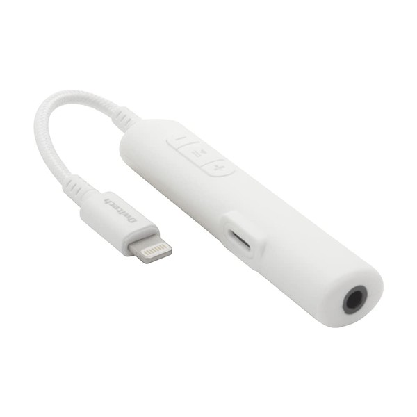 Owtec OWL-CBLTF35LT01-RWH Audio Converter Adapter with Lightning Port for Charging, Lightning to 3.5mm Mini Jack, High Resolution Compatible, 48kHz/24 Bit, DAC, MFi Certified, Earphone Microphone
