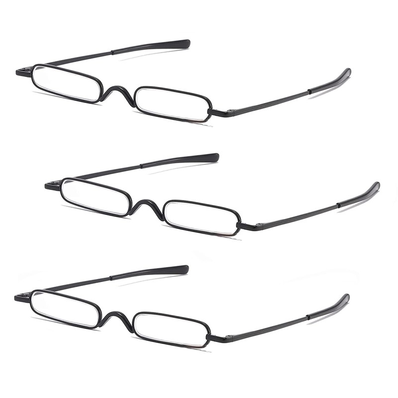 OWTXIS 3 Pack Mini Slim Pen Reading Glasses - Compact Readers with Pen Clip Case Spring Hinge Metal Frame Eyeglasses (Black, +1.75)