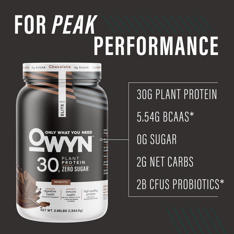 OWYN Only What You Need Pro Elite Vegan 30g Plant-Based High Protein Powder, Zero Sugar (Dark Chocolate, 2.9 lbs)