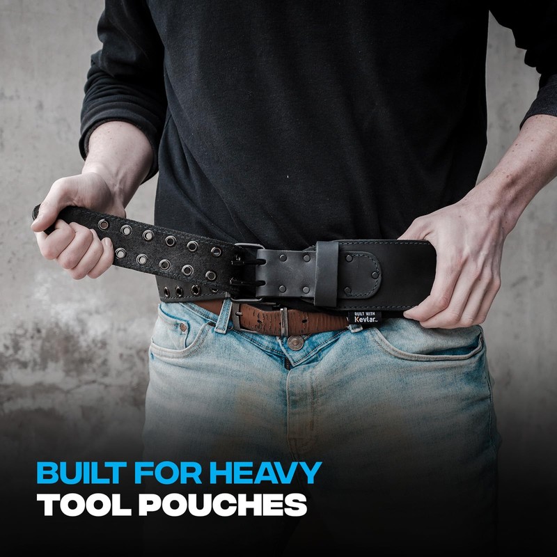 - Built to Last - Top-Grain tool belt leather, Kevlar stitching, and Kevlar reinforced layers make this belt extra durable. Iron rivets ensure that this construction belt holds up over time.