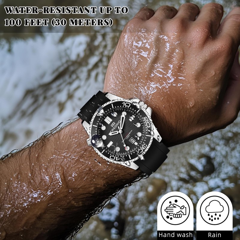 OXFANITE Mens Watches Waterproof Rubber Band Watch for Men Luminous Hands and Markers Date Display Wrist Watch