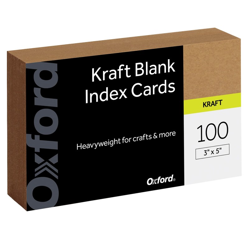 Oxford Kraft Index Cards, 100 Pack, 3x5 Index Cards, Thick, Premium Paper for Gifts, Crafts, Parties, Flash Cards, Brown, Blank on Both Sides (63505)