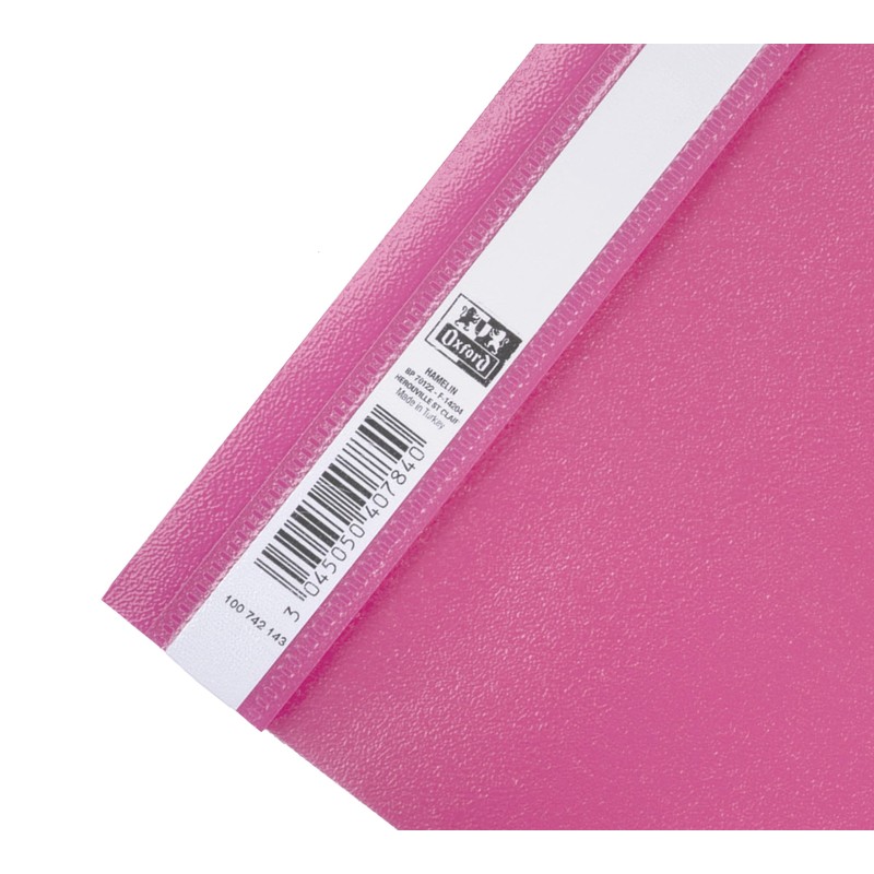 - Der Oxford Kunststoff Schnellhefter besteht aus einer farbigen Rückwand in der Farbe pink und einem durchsichtigen Deckel